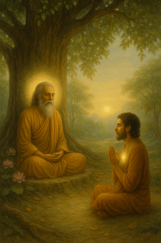 Entonces, una vez más, el aspirante se dirigió al hombre santo. Esta vez, el santo lo bendijo y le ofreció la iniciación. El aspirante entonces realizaba una rigurosa práctica espiritual de acuerdo con el consejo de su Guía Espiritual y pronto tenía la visión de Dios.